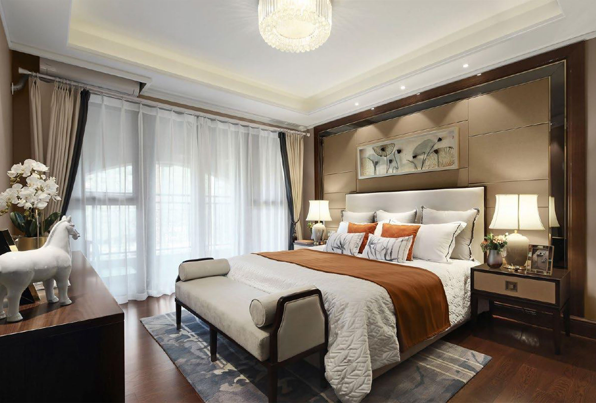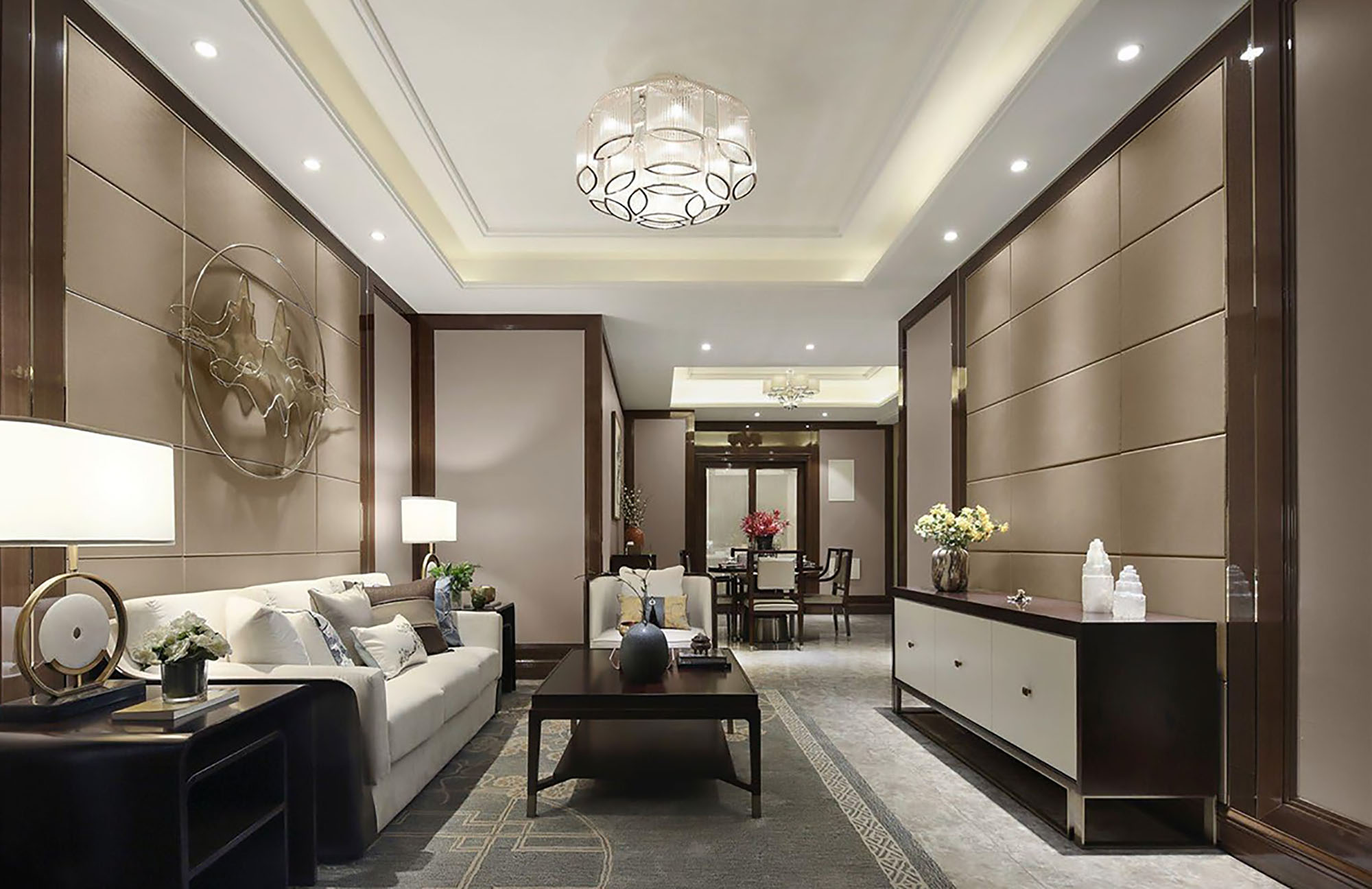 គំនិតរបស់យើងក្នុងការលាយបញ្ចូលធាតុសហសម័យ និងការសង្កត់សំឡេងចិនបុរាណ ដោយបង្កើតជាកន្លែងដែលគួរឱ្យទាក់ទាញសម្រាប់ការសម្រាក និងការធ្វើសង្គម។ ដោយបានពង្រឹងដោយពន្លឺធម្មជាតិ និងស្នាដៃសិល្បៈក្នុងស្រុក ការរចនានេះផ្តល់កិត្តិយសដល់បេតិកភណ្ឌវប្បធម៌ ខណៈពេលដែលជំរុញឱ្យមានបរិយាកាសស្ងប់ស្ងាត់។ វាយនភាព លំនាំ និងរុក្ខជាតិក្នុងផ្ទះដែលបំផុសគំនិតដោយធម្មជាតិ រួមជាមួយនឹងការផ្ទុកផ្ទាល់ខ្លួន និងបច្ចេកវិទ្យាផ្ទះឆ្លាតវៃ ធានាបាននូវបទពិសោធន៍រស់នៅគ្មានថ្នេរ។ ការរចនាលំនៅដ្ឋានដ៏ប្រណិតនេះ ធ្វើឱ្យមានតុល្យភាពរវាងភាពសុខស្រួលបែបទំនើប និងភាពឆើតឆាយដែលមិនចេះចប់ ដោយបង្កប់នូវរឿងរ៉ាវប្លែកៗនៃវប្បធម៌ចម្រុះ។